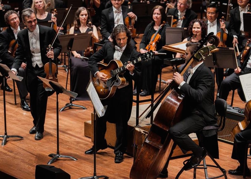 Michael performing with violinist Gil Shaham and the Seattle Symphony Orchestra on the symphony's 2014-2015 season opening concert